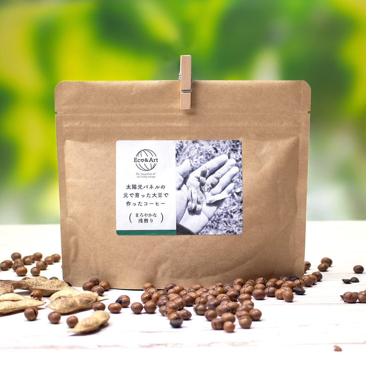 太陽光パネルの元で育った大豆から作られた、大豆コーヒーです。
